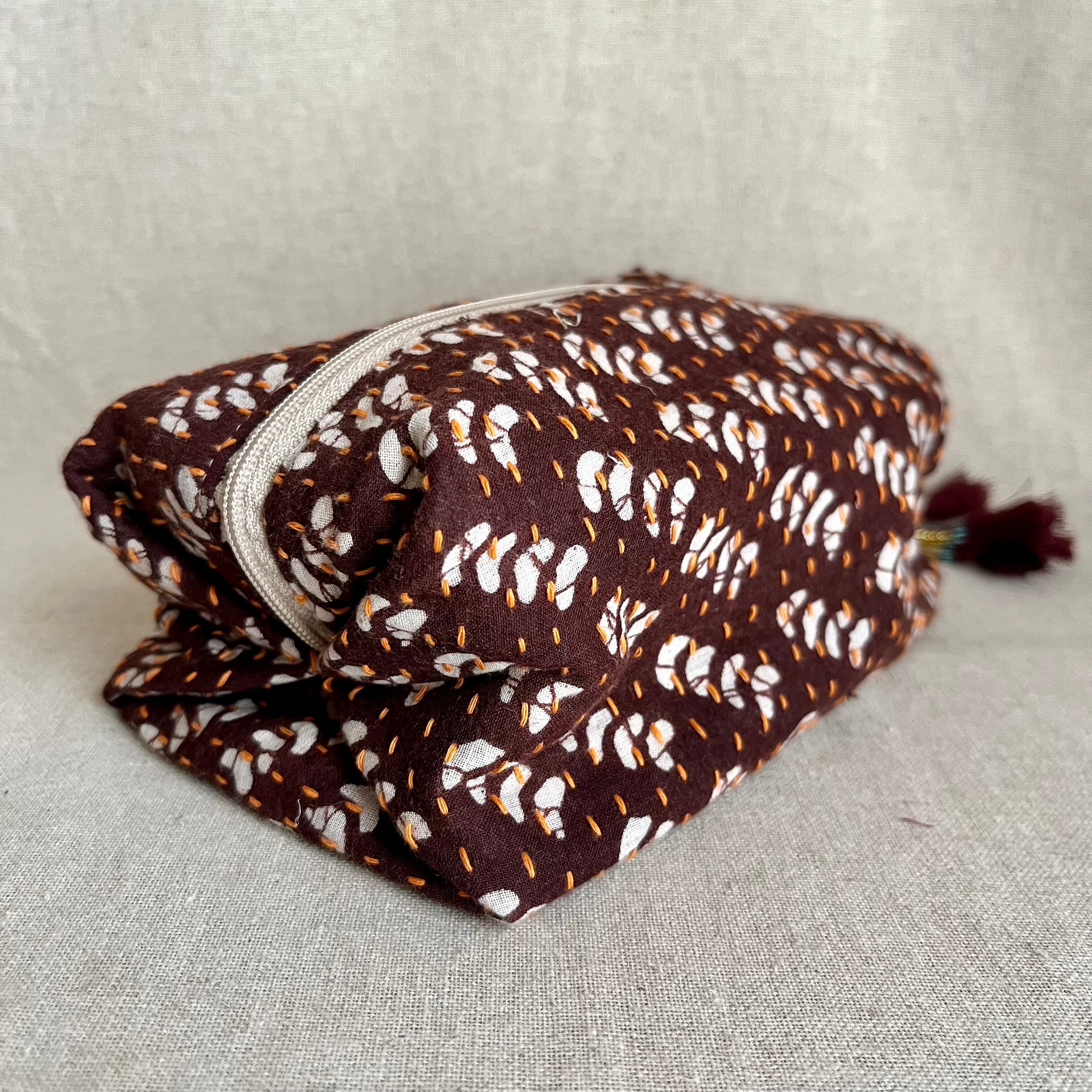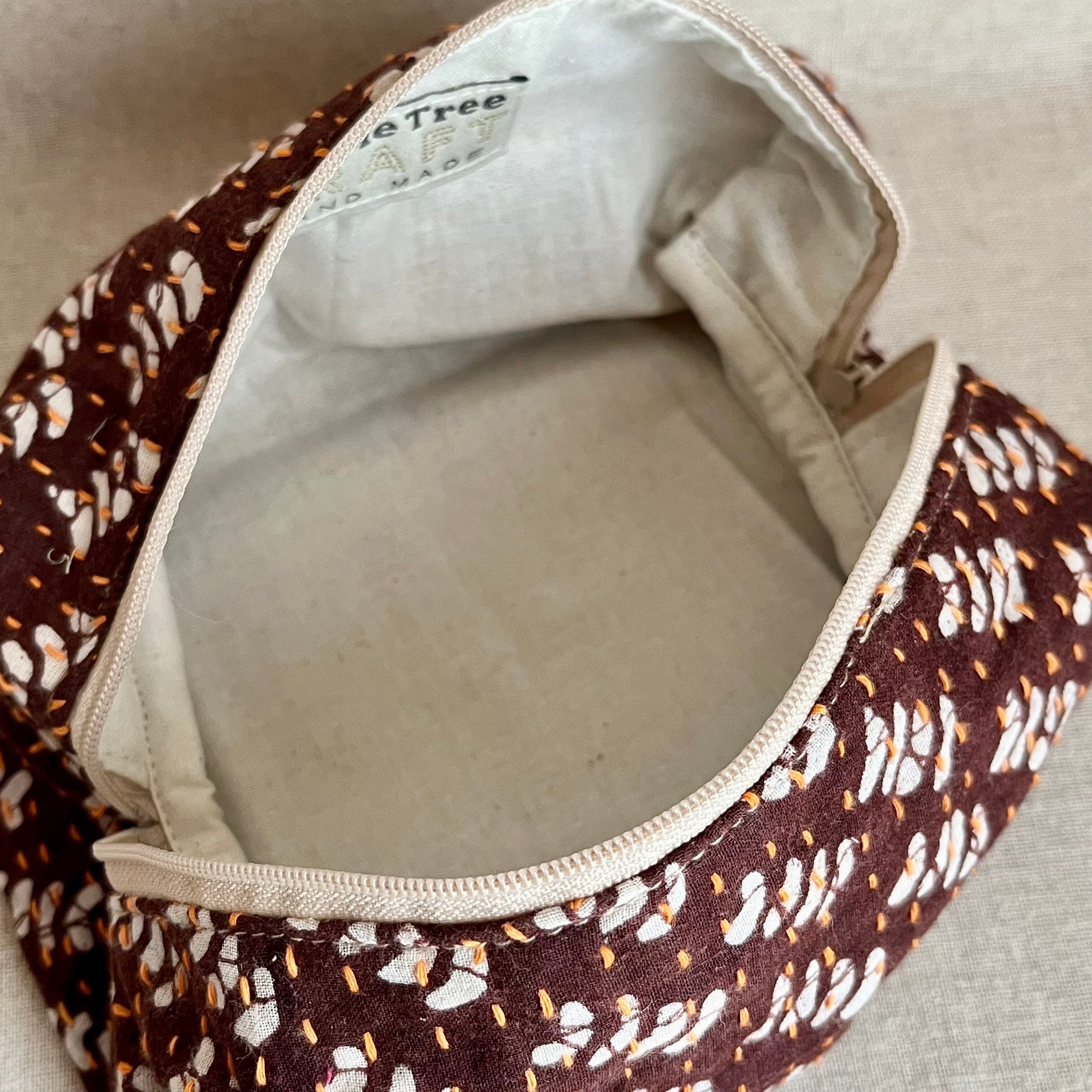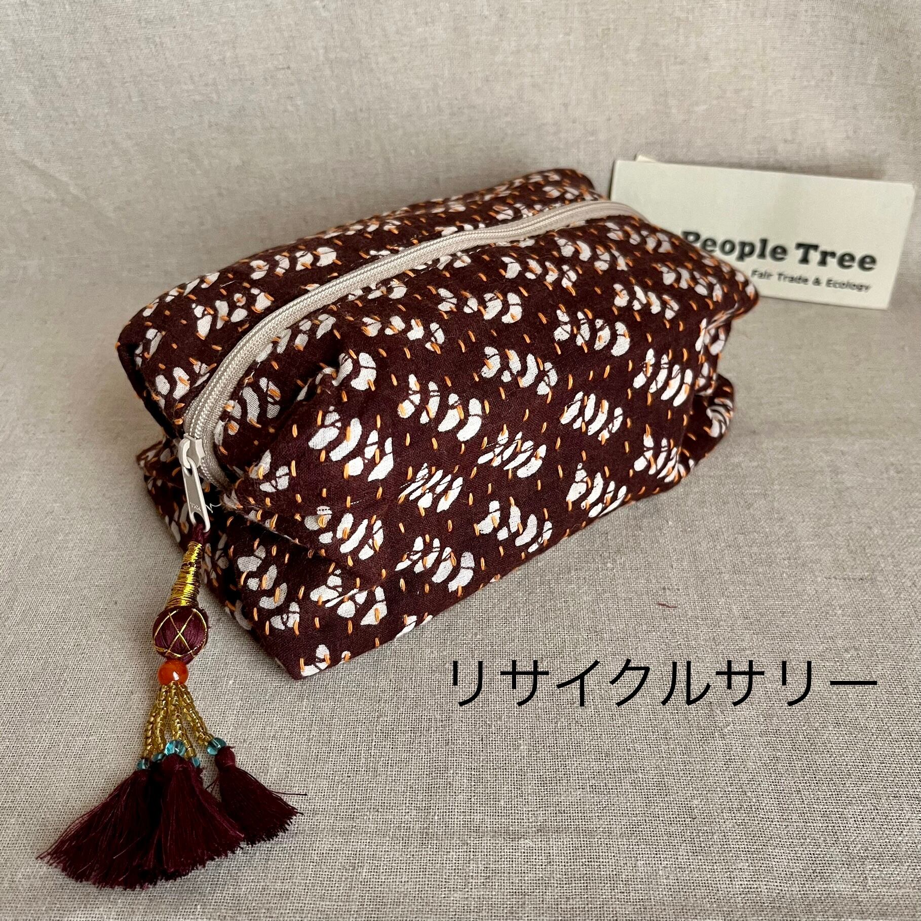 リサイクルサリーをアップサイクルしたポーチは、幅広く利用できるサイズ感が嬉しいポイントです。
