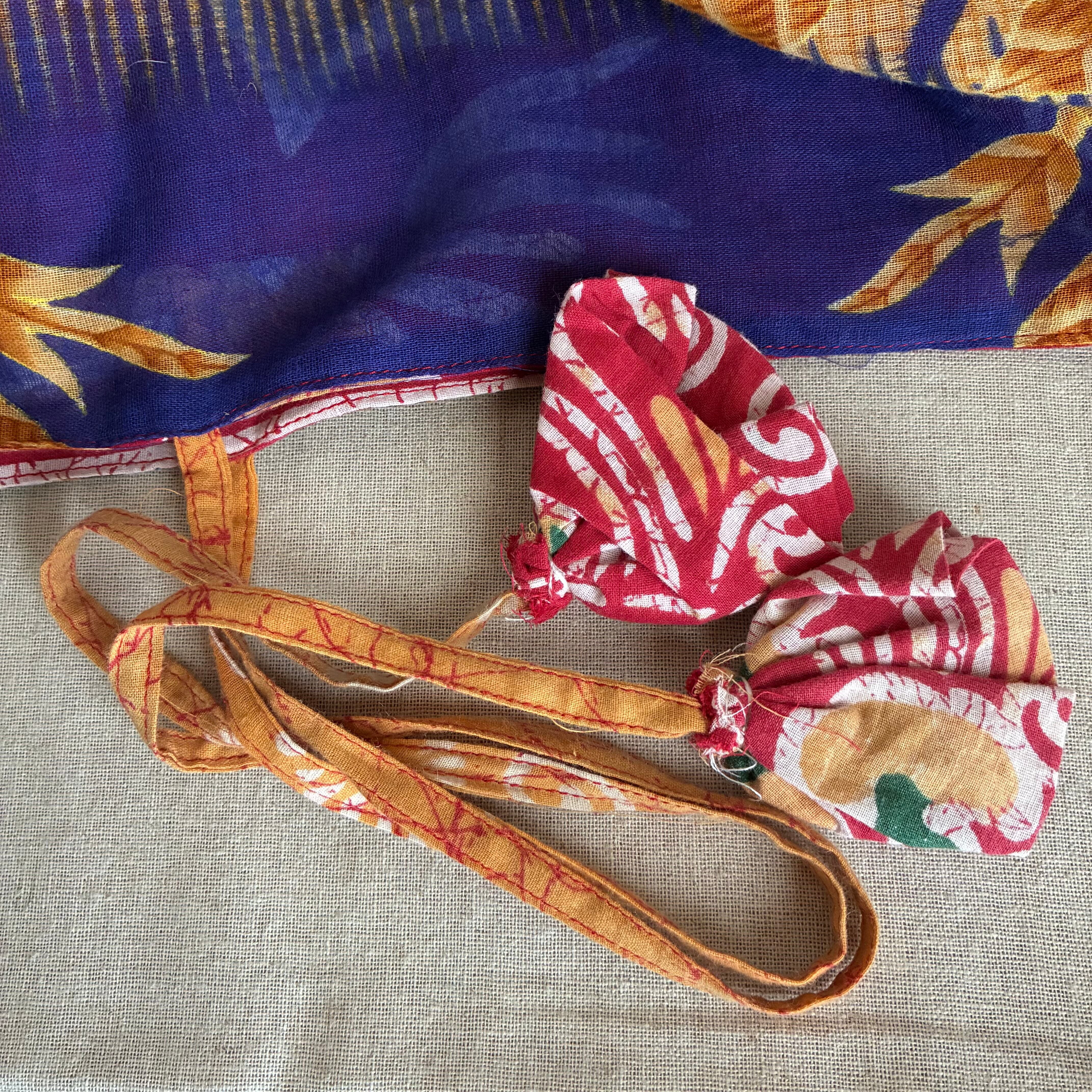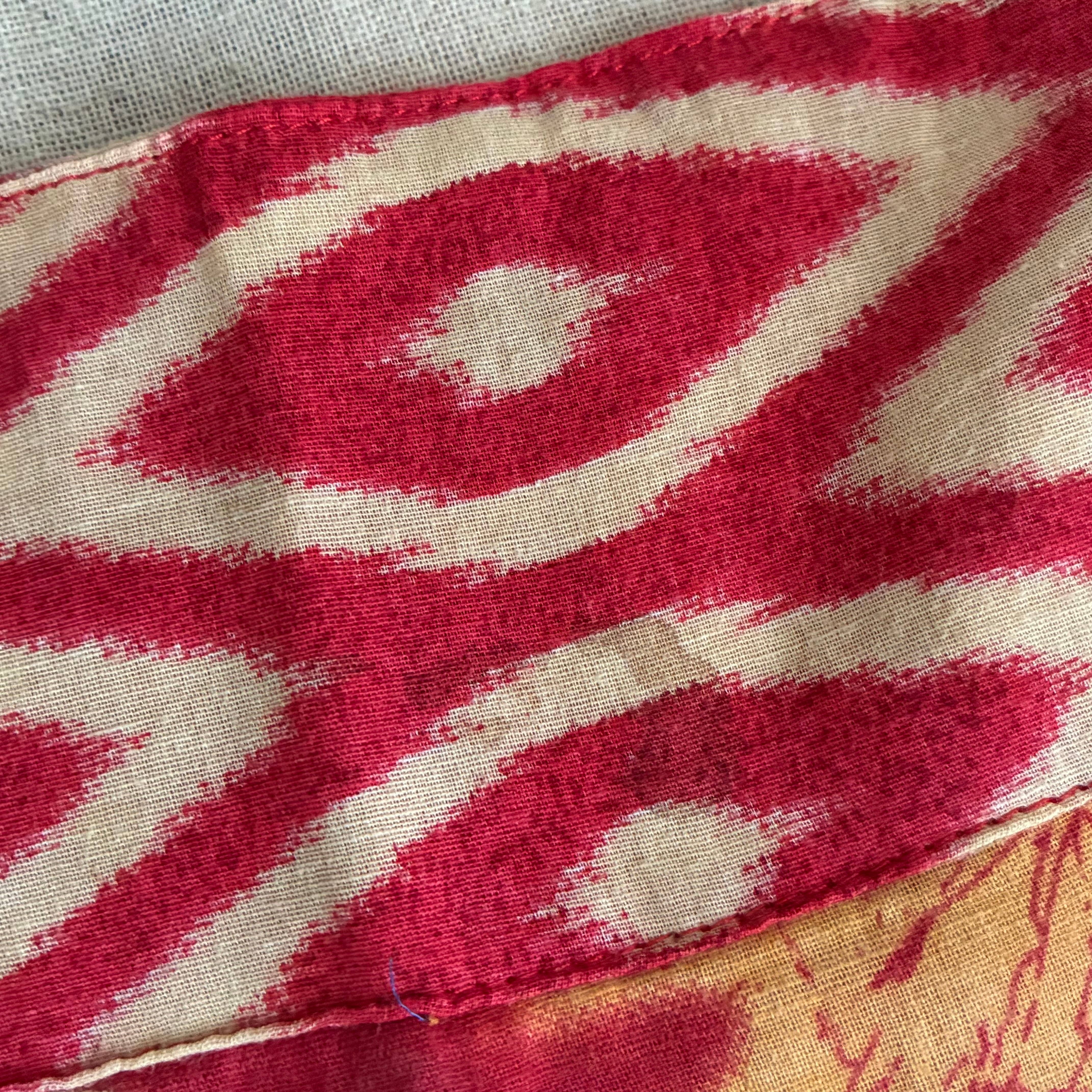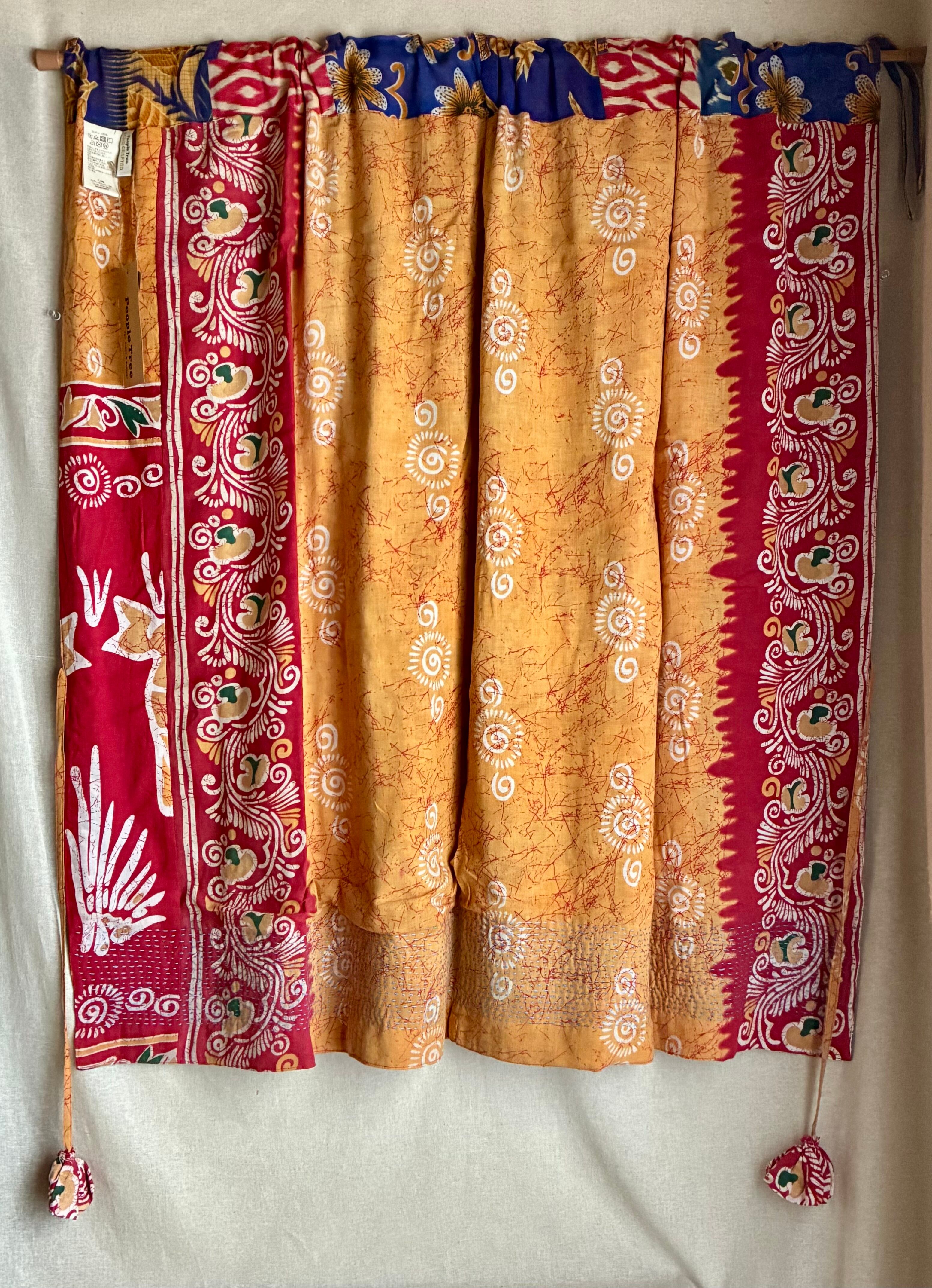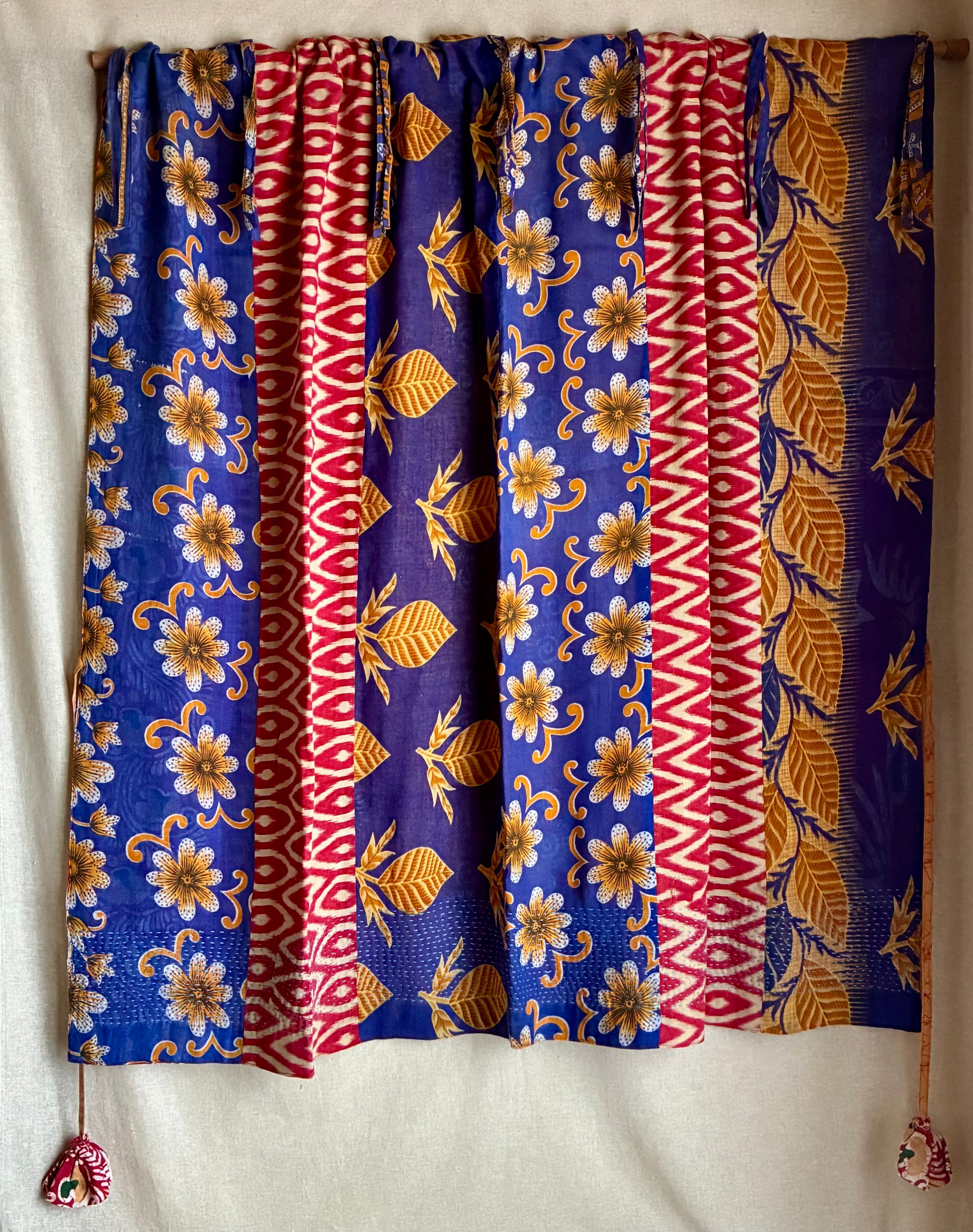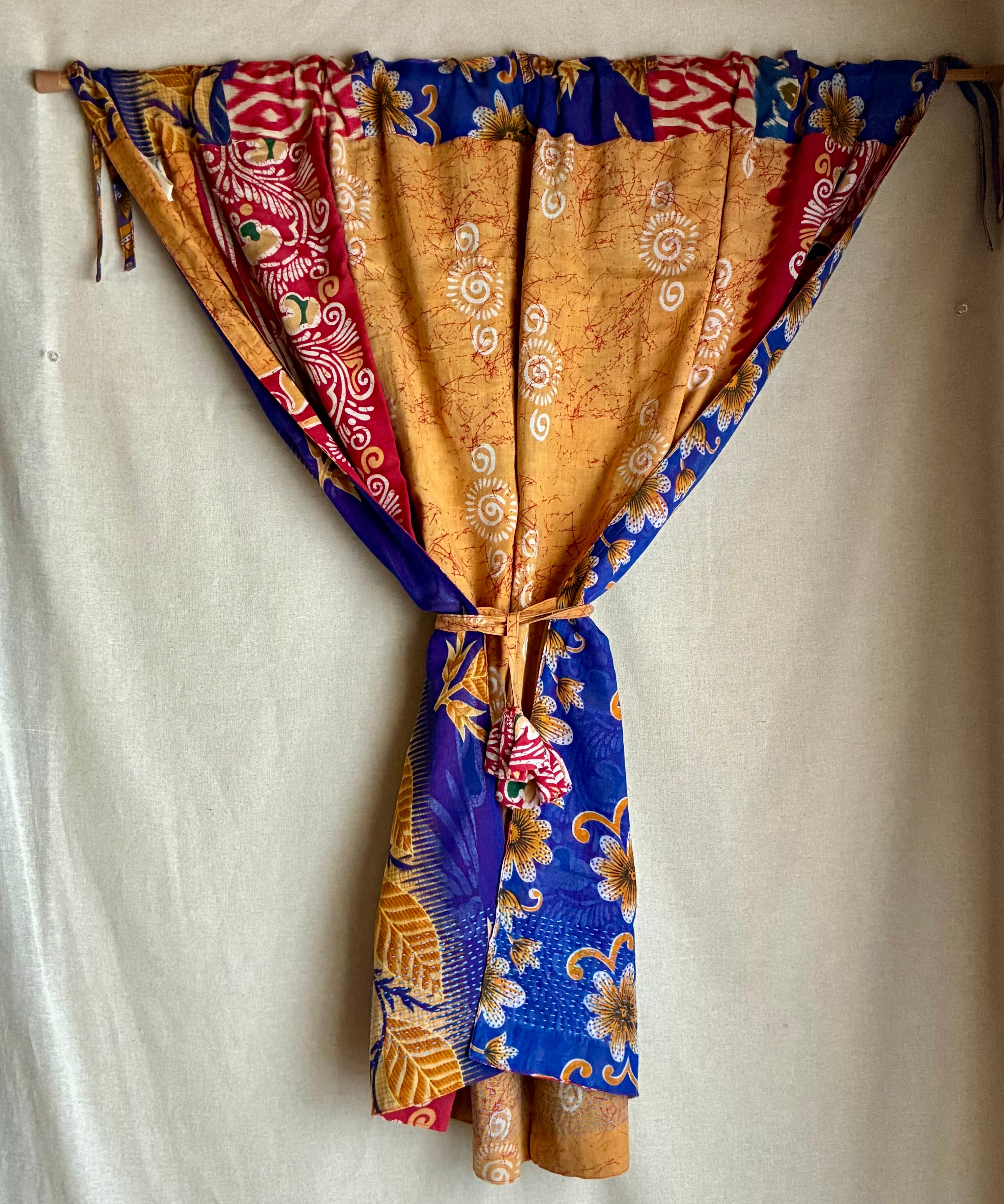 ①リサイクルサリー カーテン ショート丈 横110×縦100 レッド×ブルー系