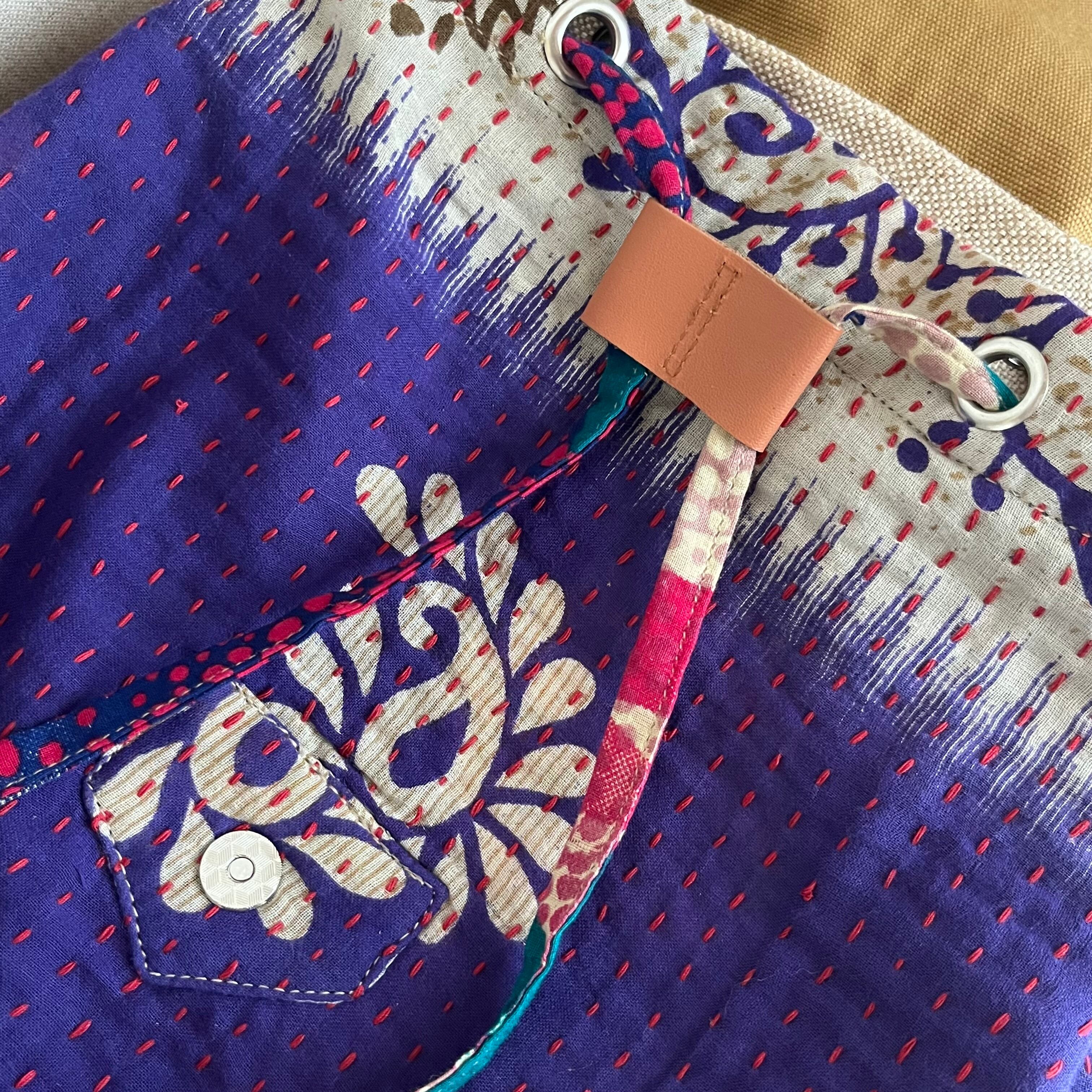 インドやバングラデシュの女性たちの伝統衣装サリーをアップサイクルしています。それぞれのリュックサックには、独自の歴史やストーリーが詰まっています。
