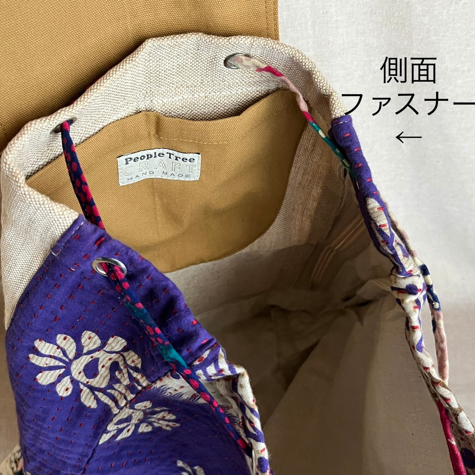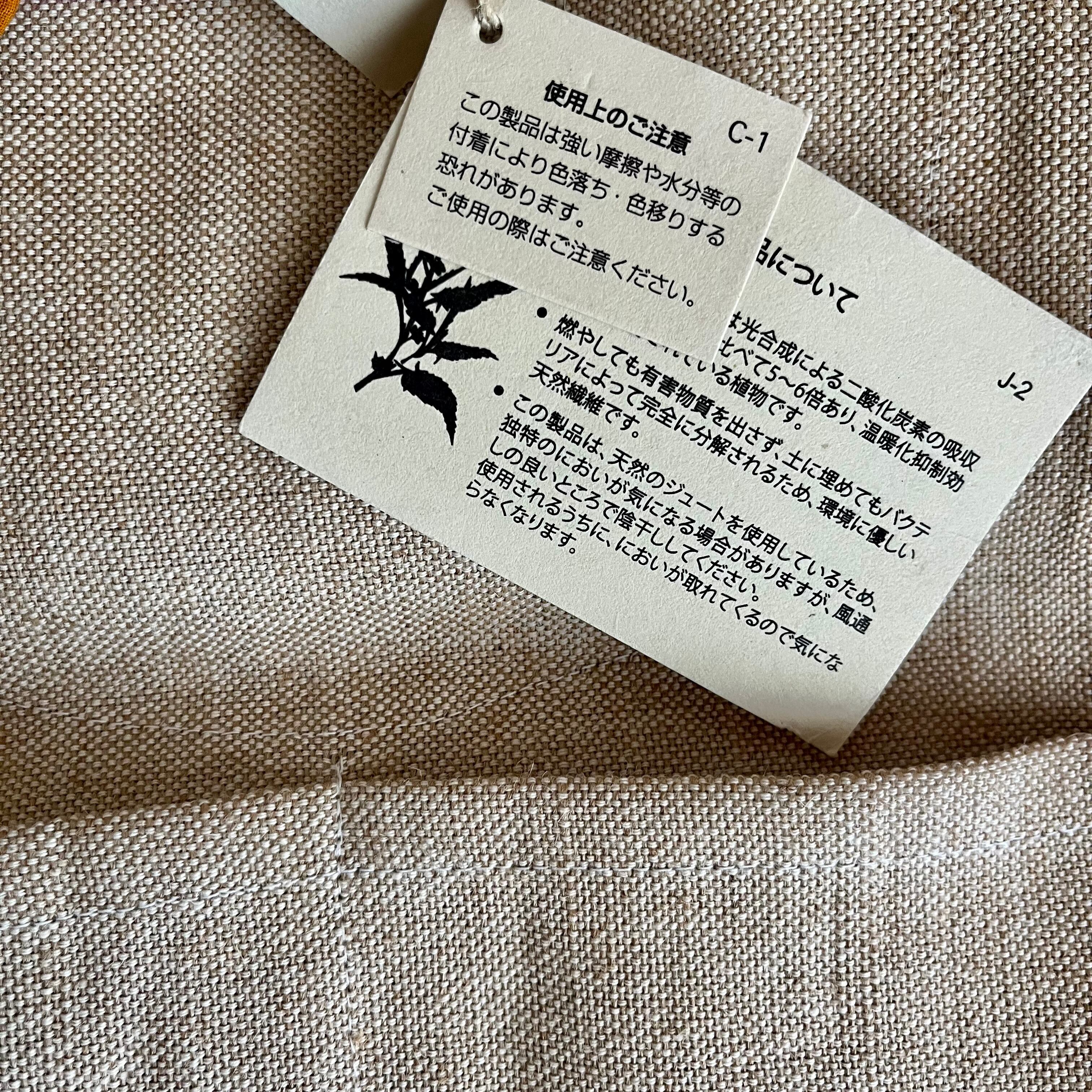 リサイクルコットンサリー、ジュート、コットン、牛革、ファスナー(YKK)、マグネットボタン